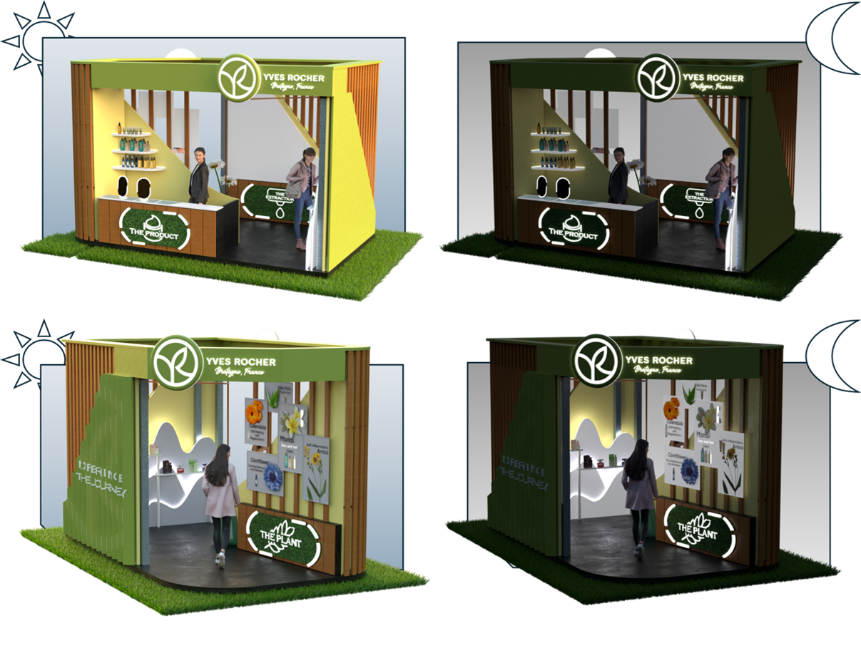This Yves Rocher pop-up store was conceived as an immersive journey into the brand’s botanical DNA—bridging exhibition design, storytelling, and retail. Built around the theme of flow, the space guided visitors through three chapters: plant origins, sustainable extraction, and product experience. A lenticular façade shifted between the Yves Rocher logo and the event title, signaling transformation before entry. Inside, lighting, materials, and wayfinding created seamless transitions while eliminating dead zones. Visitors could engage with ingredients, fragrances, and final products in both forward and reverse storytelling paths, making the experience dynamic, memorable, and true to the brand’s natural ethos.